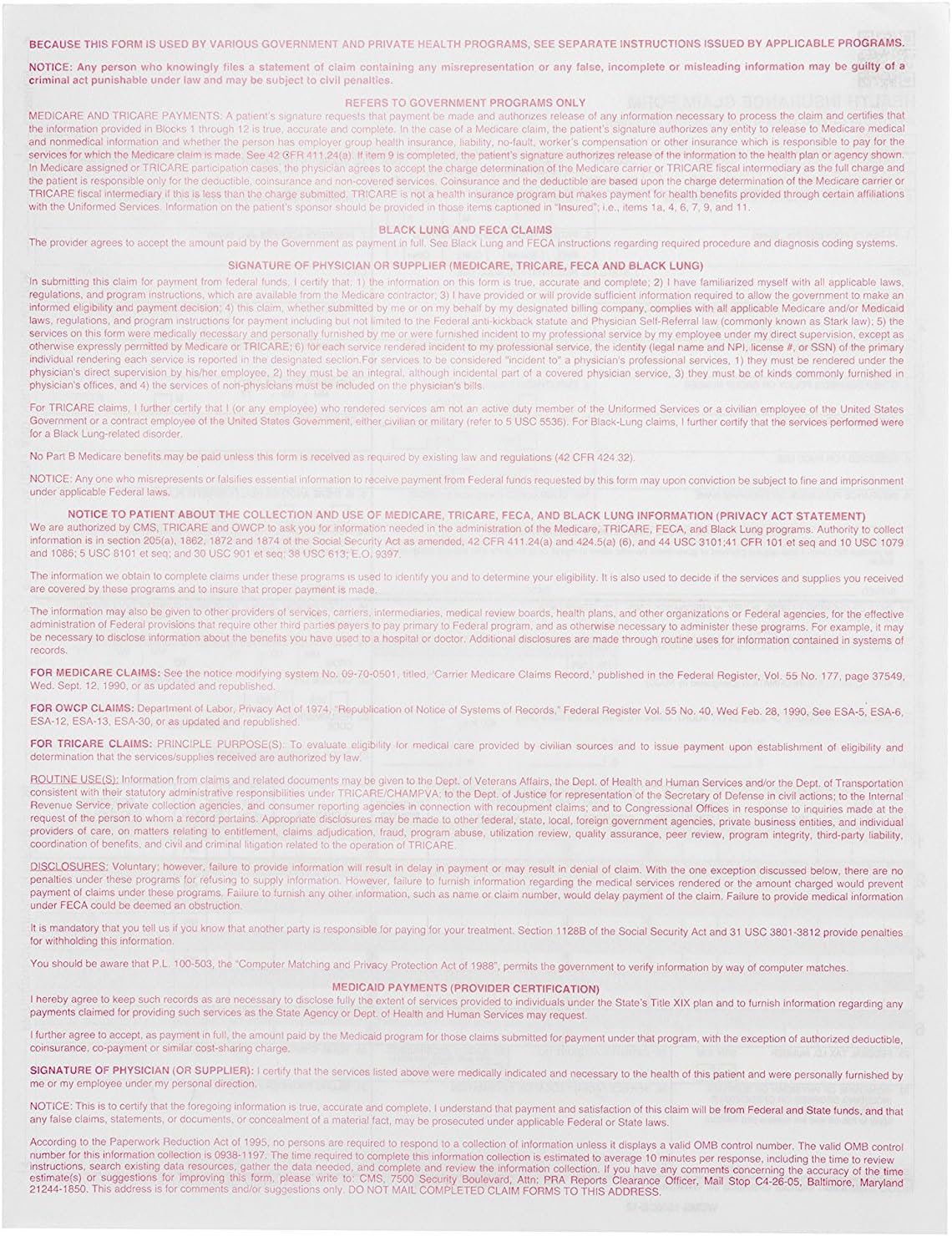 This version,02/12,is tailored specifically to align with the expectations of healthcare providers. The vibrant red ink is not just for decoration; it’s designed to enhance scanning accuracy, ensuring that claims are processed smoothly by insurers.With each form being printed on 20# bond paper, we find that they hold up well in both inkjet and laser printers-a feature that’s especially handy for offices that rely on various printing methods. Given the partnership with accredited governing agencies in the healthcare industry, the confidence we feel when using these forms is hard to beat.